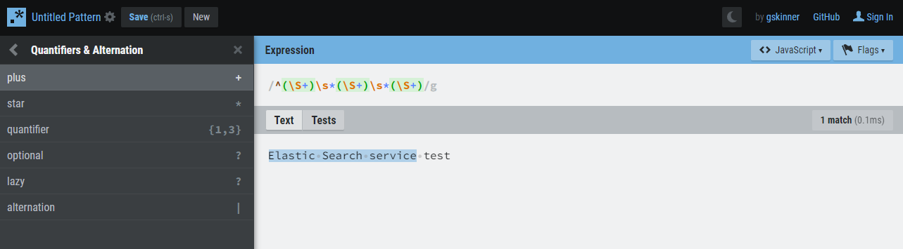 ^(\S+)\s*(\S+)\s*(\S+) 패턴은 시작 부터 띄어쓰기 2개 사이의 text 값을 수집하는 패턴이다. ( 정규 표현식)